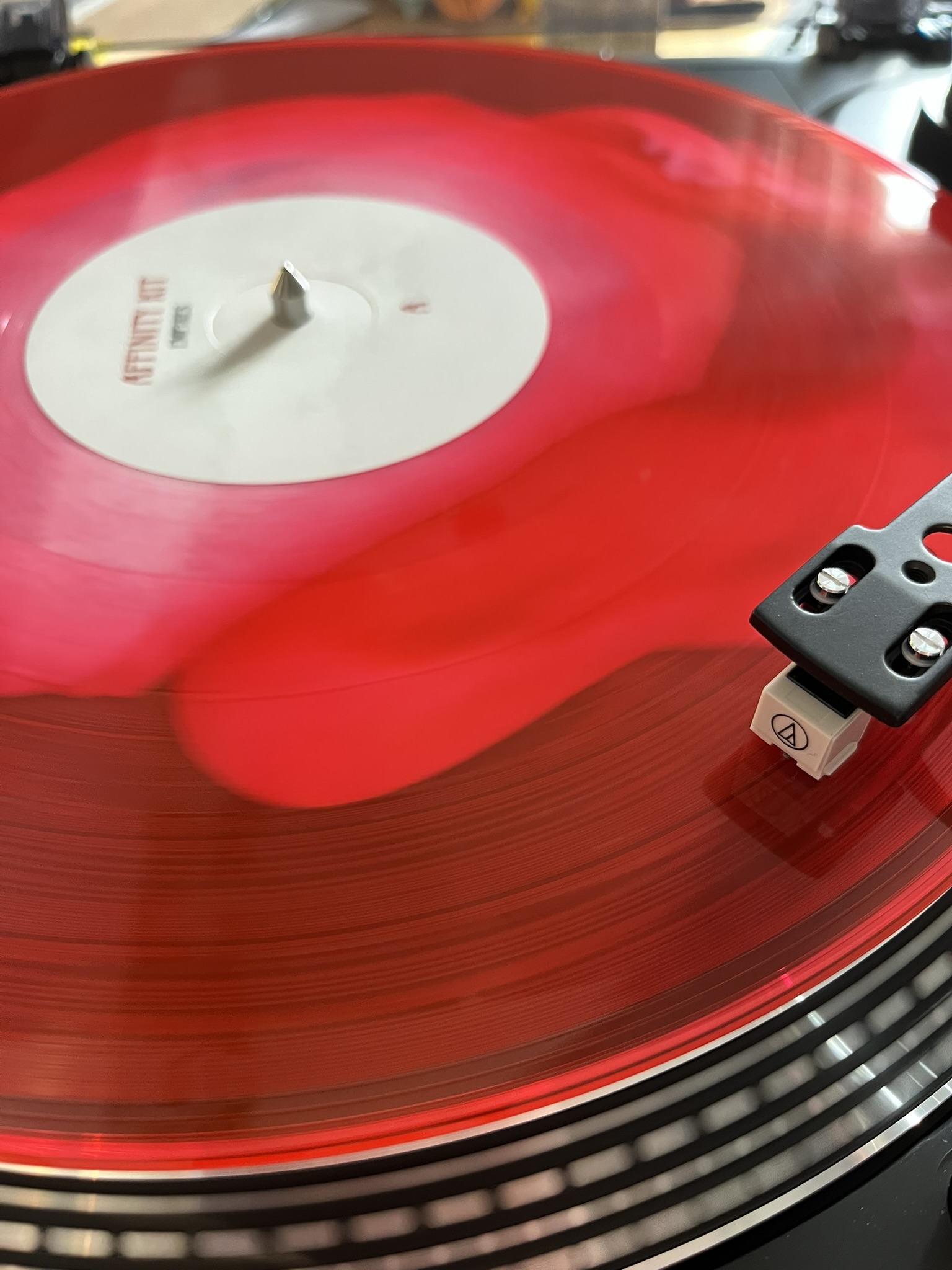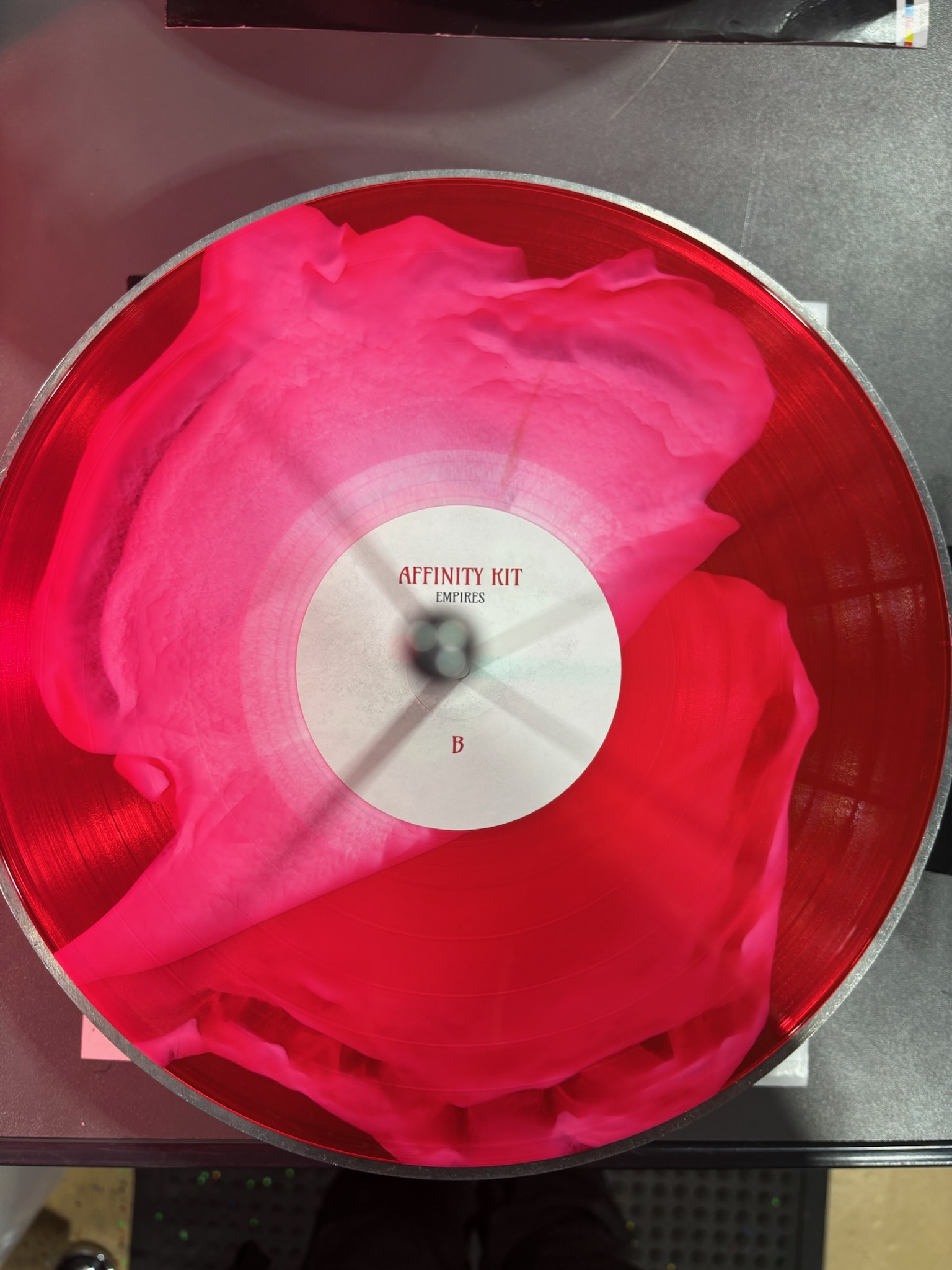 • 1 Disc (140g) Red transparent – white island, every disc is unique